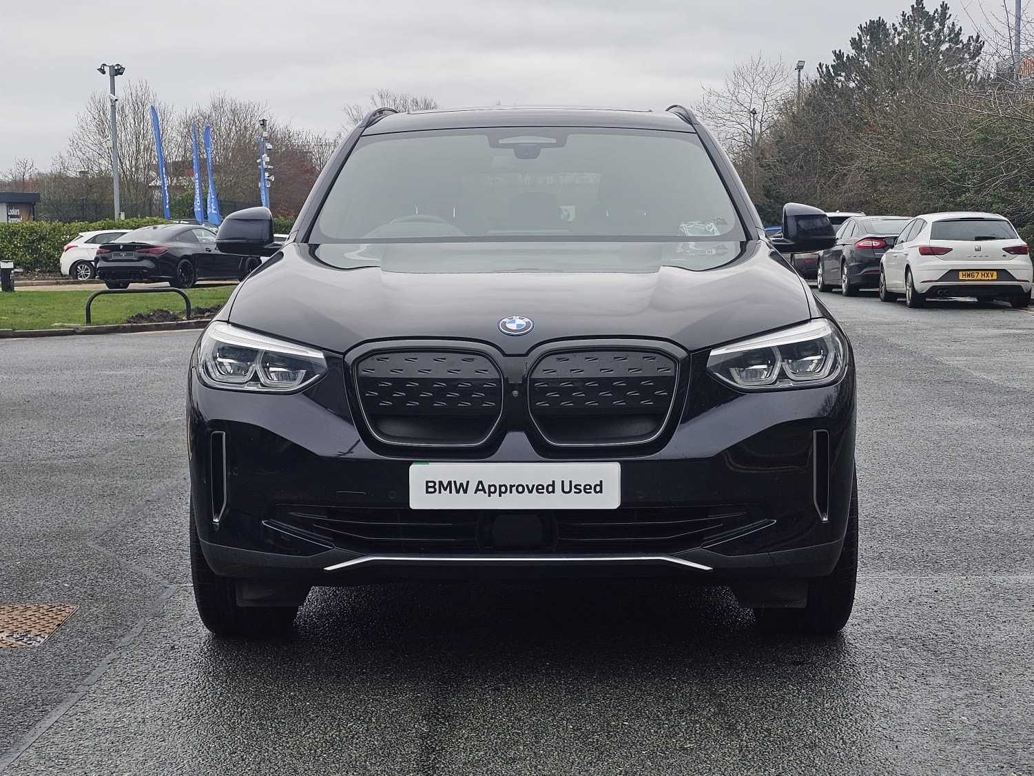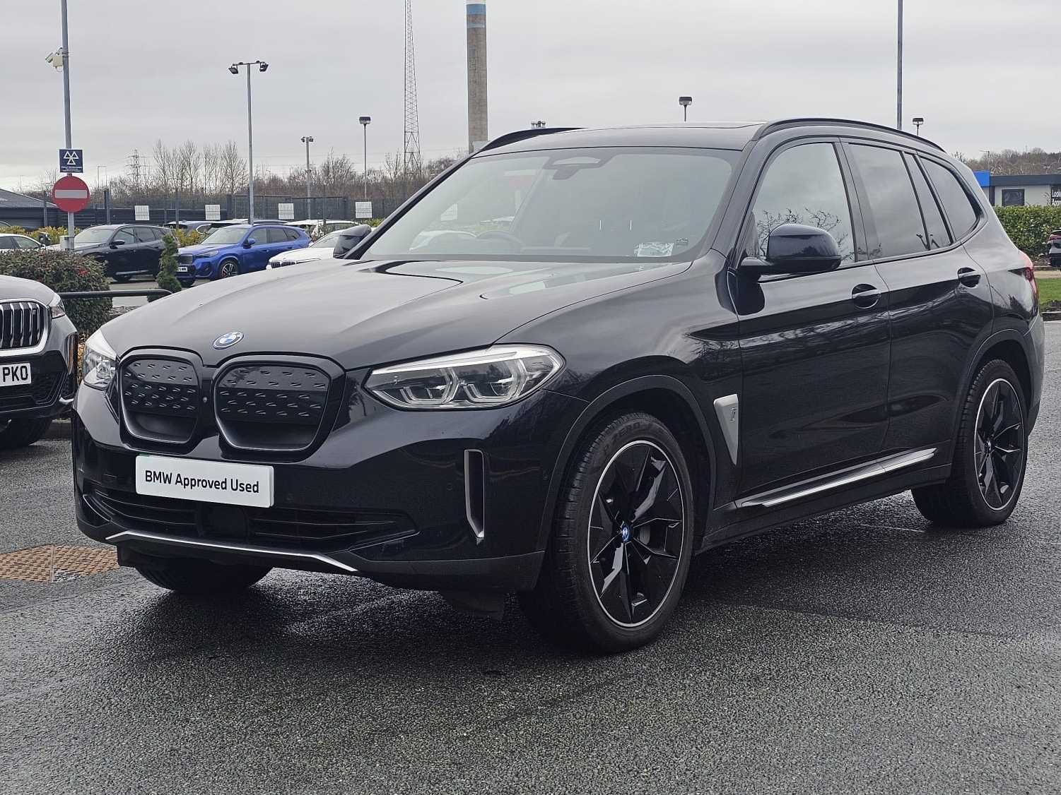 Thank you for viewing this great spec iX3 Premier Edition Pro available from our BMW site in Stoke-On-Trent. Finished in stunning Carbon Black paint and Black with Grey Contrast Stitching Vernasca Leather Interior with all the great specification you expect from a BMW that includes; 20” Alloys, Harman/Kardon Surround Sound, High-Beam Assistant, Driving Assistant Professional. Why Choose Lookers BMW Stoke? As with all BMW approved Vehicles there are a host of additional reasons of why to choose Lookers BMW to supply you with your next vehicle which include : • Minimum 12 Month unlimited Mileage BMW warranty • Independent, Certified check to verify vehicle history and mileage • Only Genuine BMW parts used – most with a 2 year warranty • Meticulous checks carried out by our qualified BMW Technicians • Minimum Of 12 months BMW road side assistance • BMW Accident support If you are viewing from a distance let us bring the car to you via video link one of our BMW experts will demonstrate the car to you via a link to your smart device so you can view the vehicle in the comfort of your own home with the family ! Please feel free to browse our review centre at google with over 1500 reviews at 4.5 stars ! We have an extensive selection BMW’s available and have access to a huge selection of vehicles across our group. Whatever you are looking for we will endeavour to find for you.