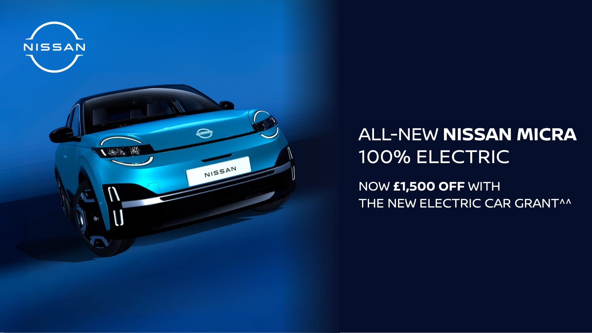 ^^The new Nissan Micra qualifies for the £1,500 EV Government Grant. £1,500 off RRP. Contact us for full details, terms and conditions.