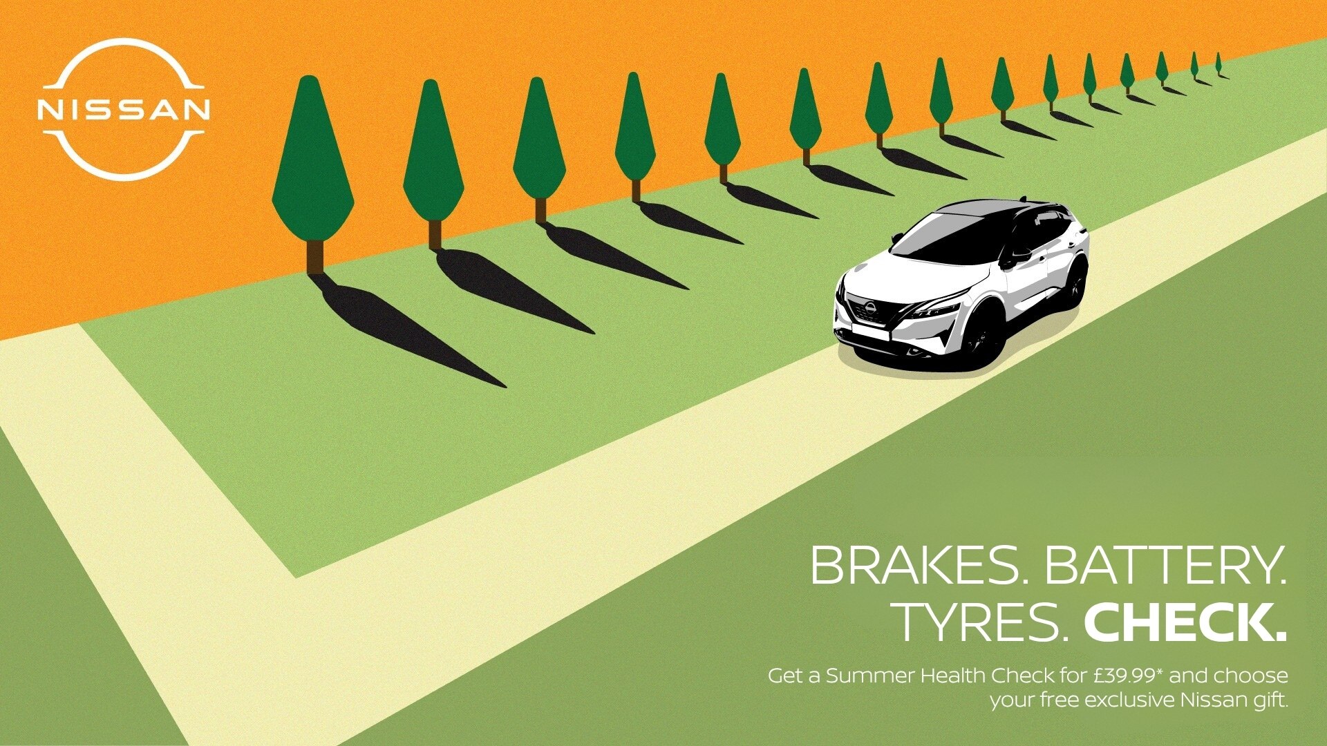 Planning any long drives this summer? Book a 20-point Summer Health Check online for £39.99 at any Nissan Dealership or Authorised Repairer.