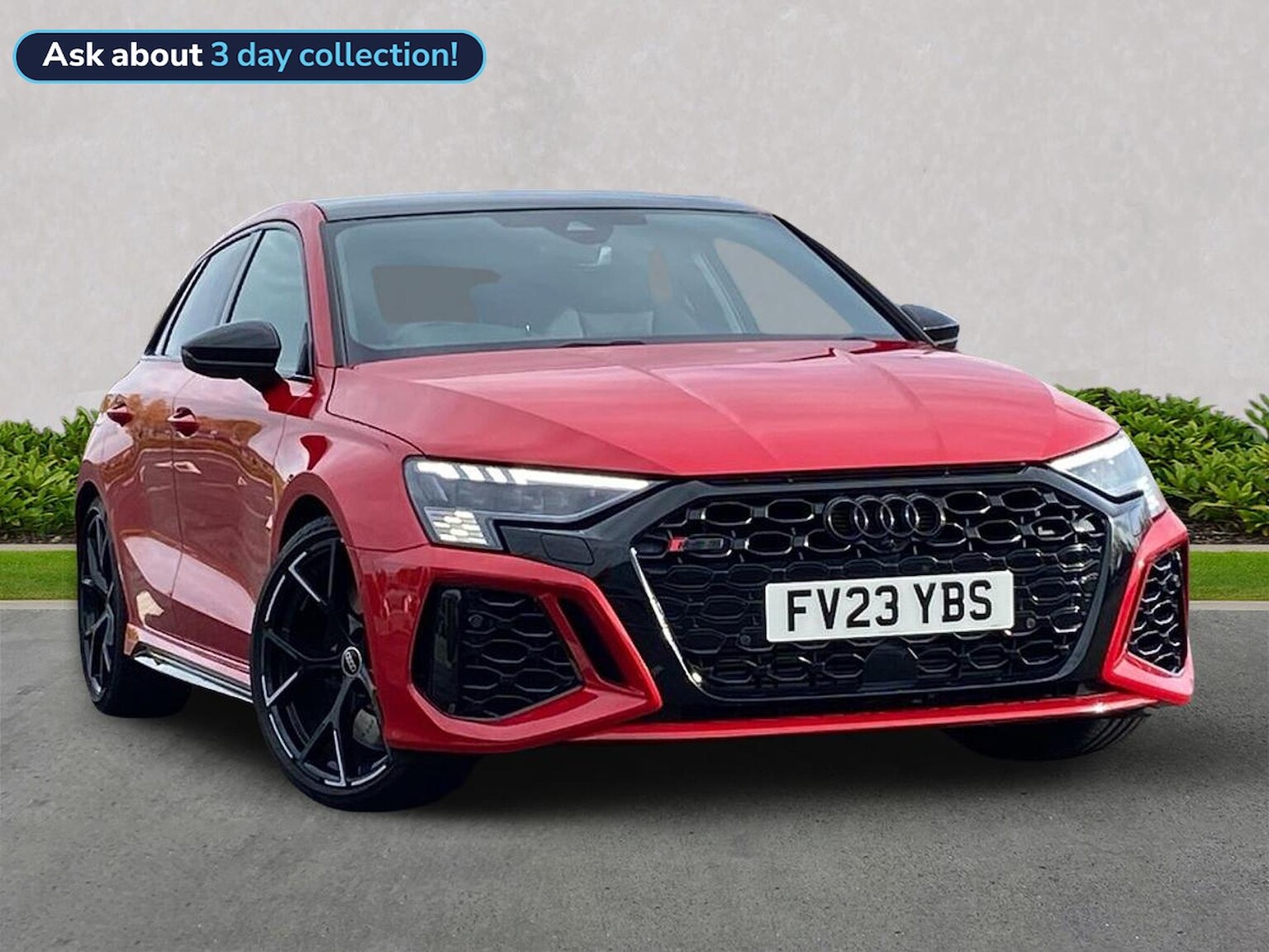 Reference: FV23YBS. Farnborough Audi are offering a rare opportunity to own this AUDI RS3 QUATTRO TFSI VORSPRUNG 5DR S-TRONIC. This excellent example has full service history, has been prepared for sale by our fully trained, experienced and skilled technicians passing our exacting pre sale checks and is ready to go. ===================================================================== The RS3 offers thrilling performance in a compact package, thanks to its iconic engine delivering sharp acceleration and a unique exhaust note. It features quattro all-wheel drive, aggressive styling, and advanced tech. Ideal for city driving with serious track potential, it blends everyday usability with hot-hatch excitement.Standard features on this car include Integrated SATELLITE NAVIGATION with real-time routing and traffic updates. SATELLITE NAVIGATION via APPLE CAR PLAY which allows integration using apps like Maps to help manage your journeys. FULL LEATHER delivering a luxury feel in the cabin. HEAD UP DISPLAY which projects driving data on windshield to keep eyes on road. CLIMATE CONTROL which automatically regulates cabin temperature for you. VIRTUAL COCKPIT so that you can customise the digital dashboard with maps, gauges, and media. CRUISE CONTROL to maintain a steady speed without constant pedal input. FRONT AND REAR PARKING SENSORS to help manoevering in tight spaces whether you are going forward or reversing. REAR CAMERA for easier and safer reversing. HEATED FRONT SEATS to keep your comfortable in cold weather conditions. Plus lots more. ===================================================================== 150 MULTI POINT CHECK | AUDI PARTS |FACTORY TRAINED TECHNICIANS 12 MONTH MANUFACTURER BACKED WARRANTY & ROADSIDE ASSISTANCE. AUDI CONNECTED| MOT COVER | KEY & LOCK COVER | HISTORY CHECKS ===================================================================== Lookers are an authorised representative for a wide range of award-winning car manufacturers, providing you with an unparalleled choice of quality and approved used cars, currently for sale. Our exceptional standards ensure you receive the best possible service when you purchase with us, ensuring peace of mind when you drive away with your new vehicle. With us representing so many great brands we are an an excellent position to offer you a fair and transparent price for your part exchange.At Lookers, we care about our customers and want to ensure that the price you see is the price you pay. Our Transparent pricing policy simply means, honest, straightforward pricing offering our vehicles at the best price possible; ensuring no haggling or hassle for you.