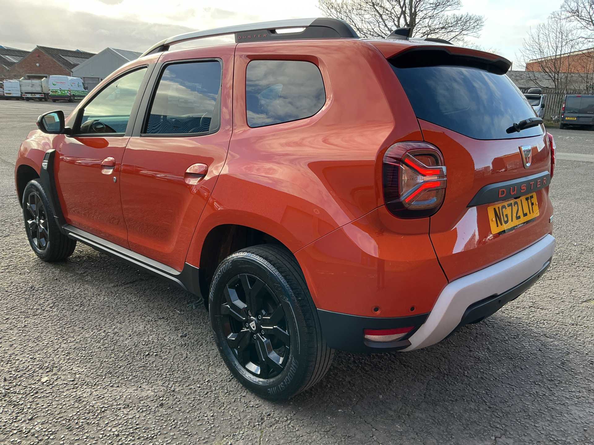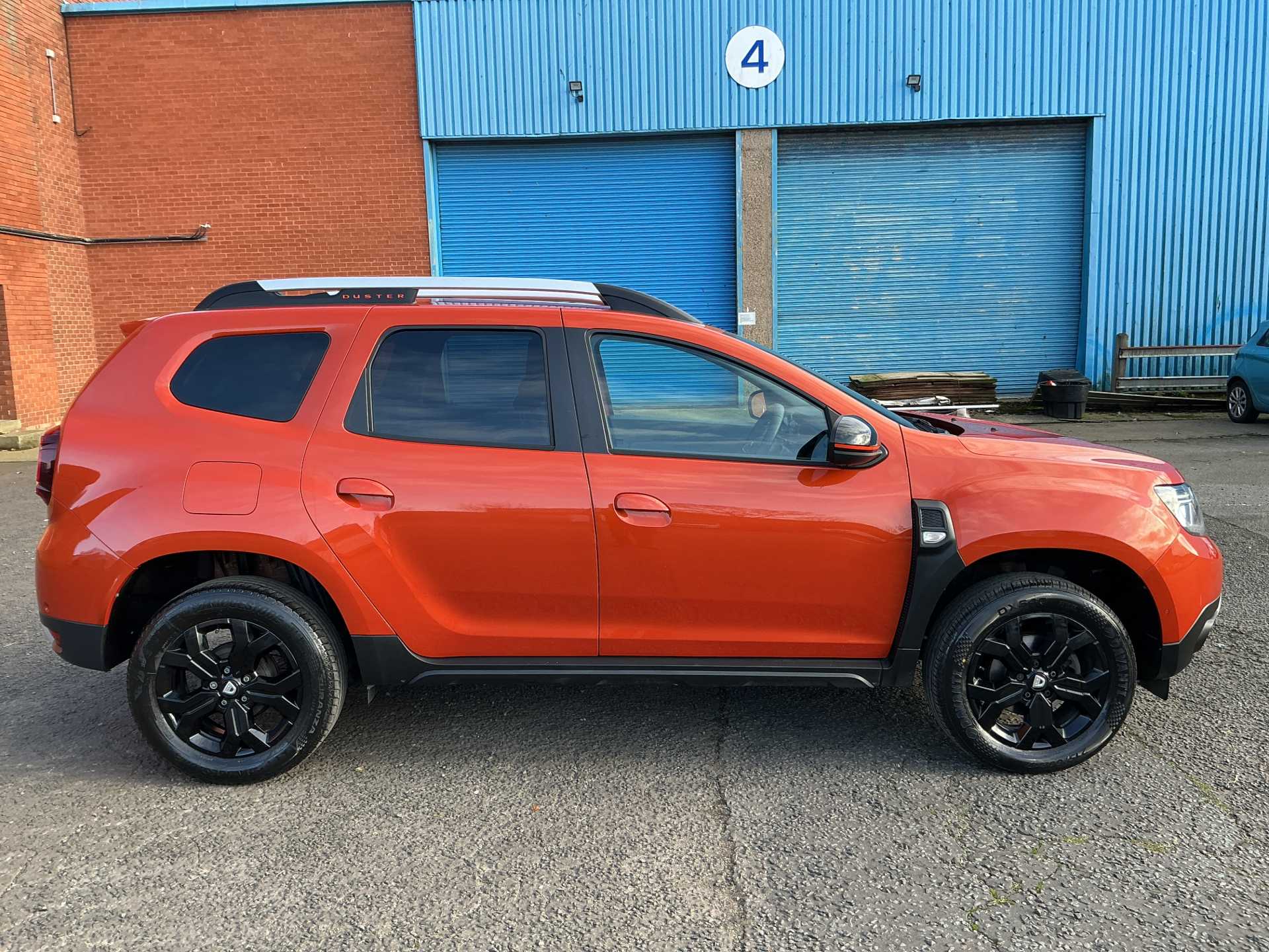 • Grey quartz longitudinal roof bars with Duster inscription + orange lettering