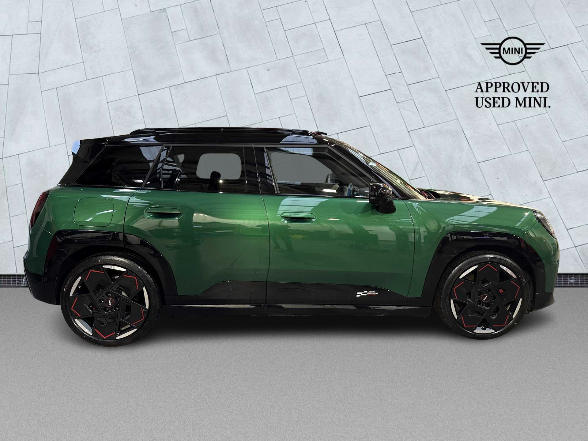 Thank you for viewing our advert, we are pleased to be able to offer you this stunning MINI John Cooper Works Aceman Electric Ex Demo finished in British Racing Green with the Vescin/cord combination JCW Black interior trim & 19" John Cooper Work Alloy Wheels, Sport Stripes Black, Active Pedestrian Safety, John Cooper Works sport seats, Rear Parking Sensors, Cruise Control, Sport, Level 3, Heated Seats, Heated Steering Wheel and Massage Seats. Here at Lookers MINI Crewe, we very much look forward to giving you a warm welcome, providing you with excellent customer service. Along with our professional service and advice, we'll help provide you with the right MINI that suits your requirements. Situated only 10 minutes from the M6 motorway at Junction 16 and only 5 minutes from Crewe train station, we are ideally placed and easily accessible via different modes of transport. All our Approved MINI's benefit from a full 12-month MINI Approved Warranty which will cover you for unlimited mileage. You will also receive 12 months MINI Roadside Assistance and 12 months MOT. You can rest assured you are covered when buying your new MINI from us. All our vehicles are fully prepared & meticulously checked by our fully trained MINI technicians. We have an extensive selection of MINI's available and have access to a huge selection of vehicles across our group. Whatever you are looking for we will endeavor to find for you. If you are viewing from a distance let us, bring the car to you via video link where one of our MINI experts will demonstrate the car to you via a link to your smart device so you can view the vehicle in the comfort of your own home with the family! Please feel free to browse the reviews of our retail center on google with over 700 reviews with a star rating of 4.8 stars! We'll look forward to assisting you and would love to welcome you to Lookers MINI Crewe.