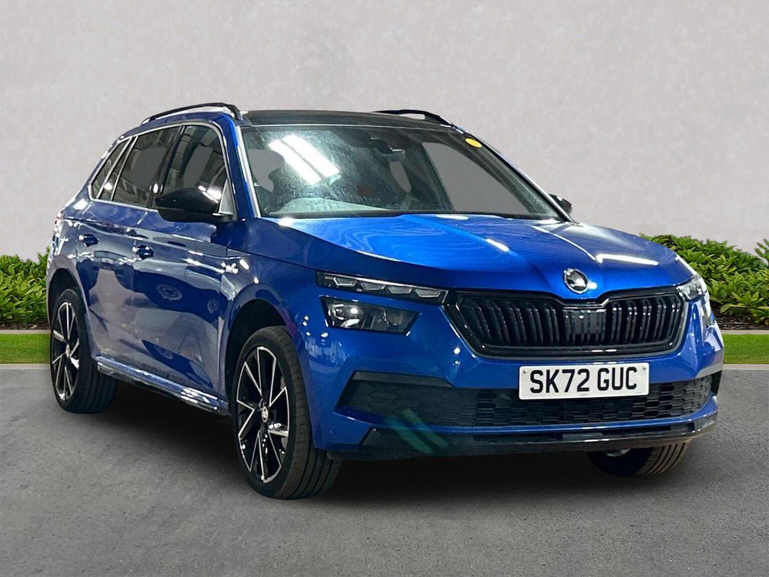 The Škoda Kamiq Monte Carlo is a sporty, top-tier trim of the compact SUV, celebrating Škoda's rally heritage with black exterior accents (grille, roof, mirrors), 18-inch alloys, panoramic sunroof, and unique interior touches like red stitching and sports seats with carbon-fiber effects. It offers powerful engine options (like the 1.5 TSI), advanced tech such as Matrix LED headlights, and a comfortable, well-built interior with modern infotainment, though its ride is more comfort-focused than truly sporty despite the looks.