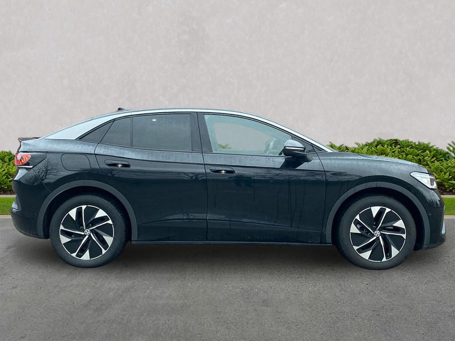 Finished in Grenadilla Black Metallic with a refined Soul Black and Platinum Grey interior, this Volkswagen ID.5 Style Pro offers a premium electric driving experience with sleek coupé-inspired SUV styling. Powered by a 286PS electric motor and 77kWh battery paired with a smooth automatic transmission, it delivers strong performance, zero-emissions driving and excellent real-world range, making it ideal for both motorway journeys and everyday use. This example is equipped with the desirable Design Package Plus, which includes Matrix LED headlights with automatic control, poor weather lighting and advanced Dynamic Light Assist, along with dynamic LED rear tail lights with animated indicators. A panoramic glass roof enhances the cabin with natural light, while illuminated styling elements to the front grille and door handles add a distinctive premium touch. Laminated privacy glass from the B-pillar backwards provides both comfort and security. The Assistance Pack adds a high level of driver convenience and safety, featuring Park Assist Plus with front and rear parking sensors, a rear view camera, proactive passenger protection in combination with Front Assist, an alarm with interior monitoring, and keyless entry and starting. Inside, the cabin is finished in the Interior Style Platinum Grey theme and features comfortable Art velours microfleece seats, a heated leatherette multifunction steering wheel with touch controls, and heated front seats. The interior is further enhanced by 30-colour ambient lighting with ID.Light, creating a modern and relaxing driving environment. Three-zone Air Care Climatronic allows separate temperature control for front and rear passengers, supported by a climate windscreen to assist rapid defrosting and prevent fogging. Practicality is well catered for with a variable height and removable boot floor, luggage net, net partition, split-folding rear seats with centre armrest, illuminated centre console storage and multiple USB-C ports in both the front and rear with charging capacity up to 45W. Rain-sensing wipers and heated windscreen washer jets add everyday convenience. Technology includes the Discover Pro navigation system with a large touchscreen display, digital cockpit, wireless smartphone charging and seamless connectivity, ensuring both driver and passengers remain informed and entertained on every journey. Combining strong electric performance, high specification and striking design, this Volkswagen ID.5 Style Pro is an excellent choice for drivers looking for a refined, spacious and well-equipped electric SUV with premium features throughout.